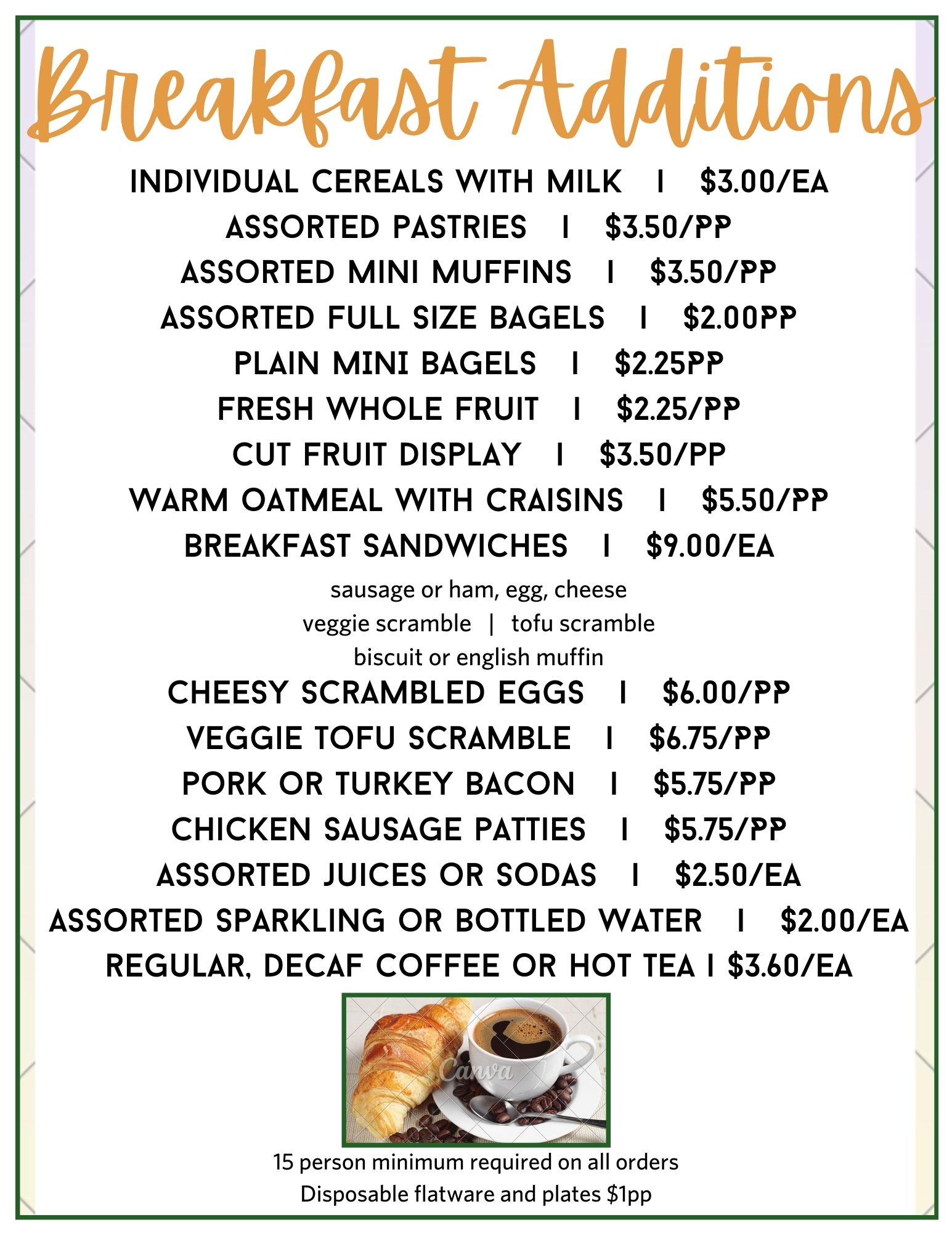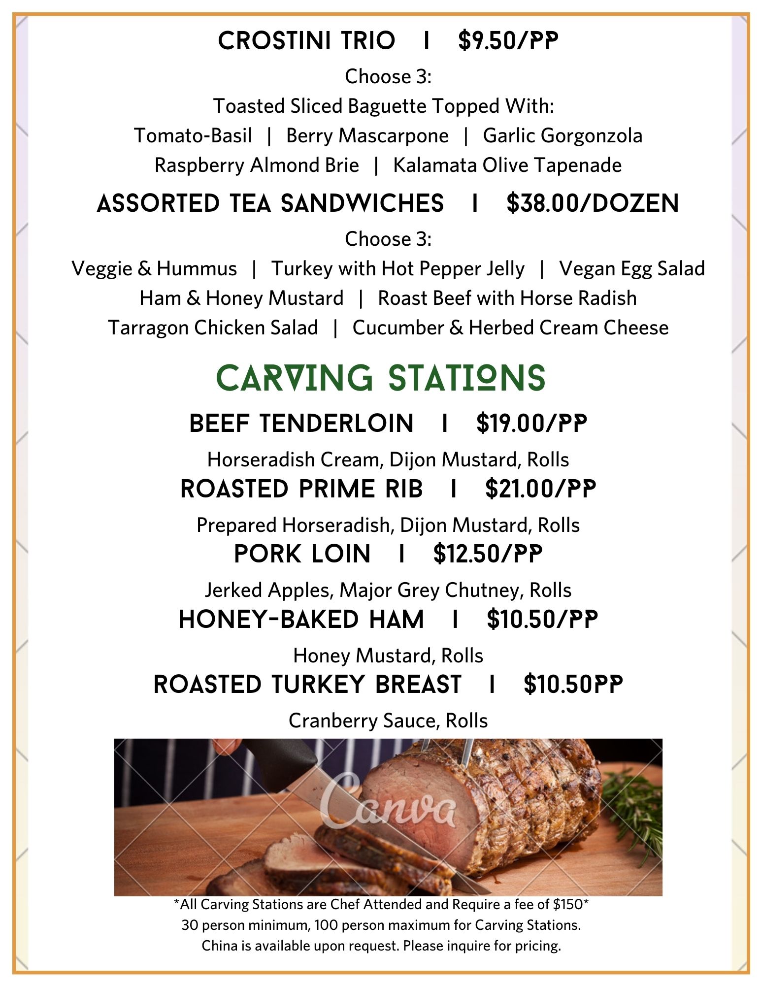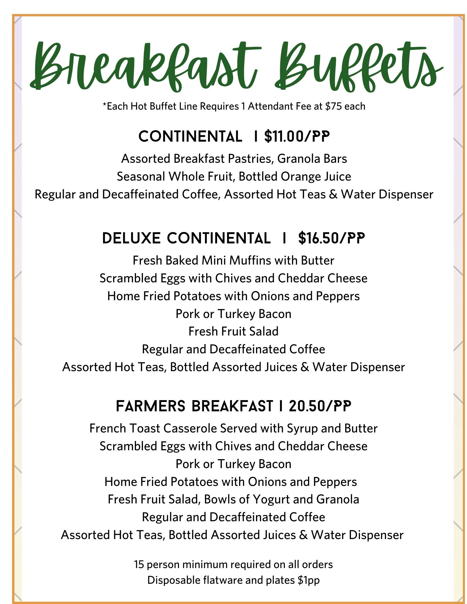 Just give us a FULL 3 days notice before the event and browse our menu for the foods you want. If you don’t see what you need on our menu, we’ll be happy to customize a menu to best suit you.